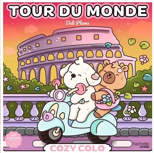 Le troisième titre à retenir parmi les nouvelles sorties Cozy colo est Didi Plums Tour du monde. Fidèle à l’esprit de la collection, ce livre propose 40 destinations à explorer à travers le coloriage. Chaque page invite à voyager autour du monde en compagnie de petits animaux adorables, mis en scène dans des décors inspirés de différents pays. Les dessins sont imprimés sur le recto uniquement, ce qui permet d’utiliser sans crainte tous types de matériel, même les feutres à alcool.